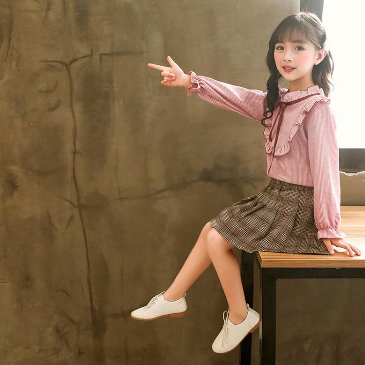 110 1 130 140 150 160 春秋 可愛い 女子 私服 2点セット 小学生 可愛い 洋服 秋 春 子供 服 女の子 セットアップ 上下セット 長袖 シャツ ブラウス スカート プリーツスカート セット ナチュラル 上品 レトロ 緑 桃色